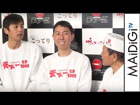 お笑いコンビ「チュートリアル」の徳井義実さんと福田充徳さんが12月17日、東京都内で行われた中華そば専門店「天下一品」新CM発表会に出席。CMには「天下一品」の木村勉代表取締役も出演している。