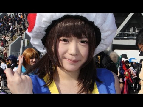 コミケは、1975年に始まったマンガや小説、ゲーム、音楽などの同人誌の即売会で、現在は夏と冬の年2回開催されている。コスプレは近年、“長もの”と呼ばれる小道具の使用を認めたり、撮影が可能なエリアを拡大するなどルールが変更された。2012年冬から撮影が可能になったエントランスは、東京ビッグサイトを背景に撮影できることもあり、多くのコスプレーヤーが集まっていた。コミケでコスプレをするには1日当たり800円の登録料が必要。