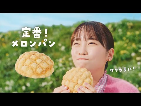 テレビCMでは、松山“店長”とパンの妖精たちが、川栄さんに定番パンや新作の塩メロンパンを紹介。土手の上からパン屋のコスチュームを着た松山店長とパンの妖精たちが、「定番パパパンパンパーン!」と音楽に合わせて登場する。