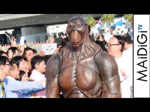 レッドカーペットには、総合司会の今田耕司さんと木佐彩子さん、人気アイドルグループ「NMB48」の上西恵さん、矢倉楓子さん、お笑いコンビのピース、おかずクラブ、トレンディエンジェルらや俳優の竜星涼さん、竹中直人さん、女優の葵わかなさん、桃井かおりさん、内田理央さん、映画「テラフォーマーズ」のゴキブリが進化した“テラフォーマー”らが登場した。
