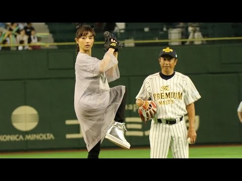 女優の石原さとみさんが8月4日、東京ドーム(東京都文京区)で行われた「サントリー ドリームマッチ2014」の始球式に挑んだ。