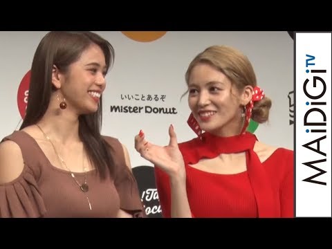 女性ダンス&ボーカルグループ「E-girls(イーガールズ)」の佐藤晴美さん、楓さん、坂東希さん、山口乃々華さんが4月23日、東京都内で行われた「ミスタードーナツ新商品タピオカドリンク発売記念 乾杯式」に登場した。