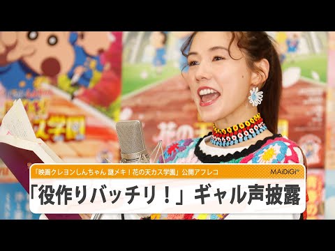 女優の仲里依紗さんが3月17日、東京都内で行われた人気アニメ「クレヨンしんちゃん」の29作目となる劇場版最新作「映画クレヨンしんちゃん 謎メキ!花の天カス学園」(高橋渉監督、4月23日公開)の公開アフレコに登場。小中一貫校の天カス学園内トップのエリートクラス・テン組に在籍し、怪事件の容疑者の一人となるエリートギャル・アゲハの声を披露した。