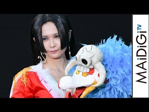 尾田栄一郎さんのマンガが原作のアニメ「ONE PIECE(ワンピース)」のコスプレコンテスト「ワンピースコスプレキンググランプリ」の最終決戦が8月3日、オアシス21(名古屋市東区)で開催され、ボア・ハンコックに扮(ふん)した日本のるなちっちさんが登場した。コスプレーヤーはヘソ出し衣装で、抜群のスタイルのハンコックになりきった。