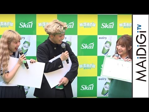 「“放課後炭酸 愛のスコール”キャンペーン開始記念PRイベント」は、1971年に誕生した南日本酪農協同の乳性炭酸飲料「スコール」の誕生45周年を記念したキャンペーン。イベントには、2012年の「関東高1ミスコン」で準グランプリを受賞したモデルの“ちぃぽぽ”こと吉木千沙都さんと、MCとしてお笑いコンビ「アンバランス」も登場。ぺこ&りゅうちぇるさんとちぃぽぽさんは、クイズやイラスト描きに挑戦した。