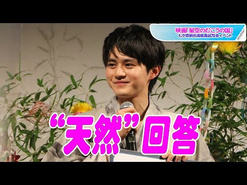 連続ドラマ「ドラゴン桜」の出演で話題を集めた俳優の鈴鹿央士さんが7月5日、東京都内で行われた主演映画「星空のむこうの国」(小中和哉監督、16日公開)の七夕直前完成披露試写会イベントにダンス・ボーカルグループ「lol(エルオーエル)」の佐藤友祐さんら共演者と登場。七夕が近いことから、短冊の願いごとをフリップで発表する企画が行われ、鈴鹿さんが発表する番になると、佐藤さんが「やっぱり(主演なので)『大ヒット』とか『コロナ収束』とかだと思いますね」と予想。だが、鈴鹿さんの願いごとは「イギリスでサッカー観戦」で、佐藤さんから「おい、主役!」と突っ込まれると鈴鹿さんは「恥ずかしいですね……」と照れ笑いし、場を和ませていた。