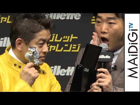お笑いコンビ「スピードワゴン」の井戸田潤さんと小沢一敬さん、タレントの大島麻衣さんが2月15日、東京都内で行われたひげ剃り用かみそり「ジレット プロシールド」のキャンペーン発表記念イベントに登場した。3人は、同商品の肌への優しさを、さまざまな方法でデモンストレーションし、商品を熱烈にアピールした。