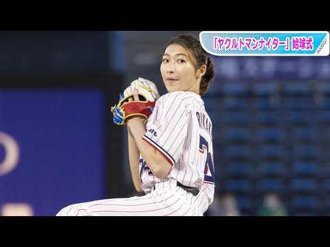 競泳の池江璃花子選手が9月25日、神宮球場(東京都新宿区)で行われたプロ野球・東京ヤクルトスワローズ対中日ドラゴンズ戦に登場。試合は「ヤクルトマンナイター」と題して開催され、ヤクルトの広告キャラクターを務める池江選手が駆け付け、初めての始球式に挑戦した。
