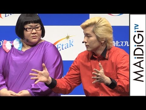 お笑いコンビ「メイプル超合金」が11月9日、東京都内で行われた「イータック抗菌化スプレーα」(エーザイ)の発売記念イベントにタレントのSHELLYさんらとともに登場した。