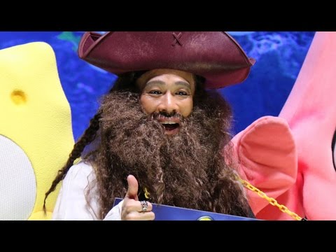 この日は、海底都市に住んでいるという設定の米国の人気アニメのキャラクター「スポンジ・ボブ」の映画「スポンジ・ボブ 海のみんなが世界を救Woo(う~)!」(16日公開)のイベント。「日米スーパーポジティブキャラ対決」と題して、劇中に登場する海賊に扮(ふん)した柳沢さんが“日本一のポジティブ男”として、ポジティブな性格のスポンジ・ボブと、ポジティブさを競った。