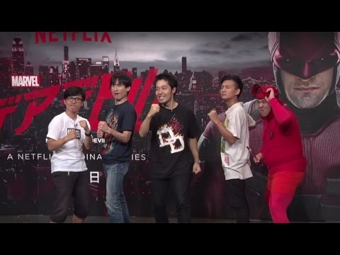 動画配信サービス「Netflix(ネットフリックス)」で配信されるアクション・エンターテイメントドラマ「デアデビル」の日本最速上映イベントが8月26日、東京都内で行われ、マーベル作品が大好きなお笑いコンビ「オリエンタルラジオ」の中田敦彦さんや「バッファロー吾郎」の竹若元博さん、なだぎ武さんらが登場した。