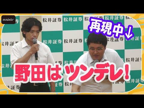 お笑いコンビ「マヂカルラブリー」の野田クリスタルさん、村上さんが8月5日、党供養都内で行われた松井証券の動画コンテンツ「『資産運用!学べるラブリー』特別夏期講習~金融教育編~」の公開収録に登場した。