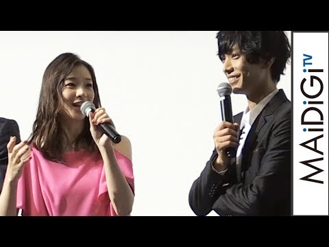女優の足立梨花さんが、俳優の黒羽麻璃央さんとダブル主演する映画「アヤメくんののんびり肉食日誌」(芝崎弘記監督)の初日舞台あいさつに登場。
