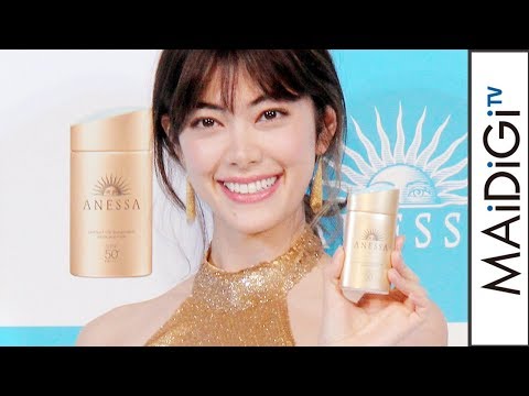 モデルの森星さんが2月20日、東京都内で開かれた資生堂ジャパンの日焼け止めブランド「アネッサ」の新CM・新製品発表会に登場。自身がプロデュースしたというゴールドのドレス姿の森さんは「キュートさを意識したドレスです。(製品の)ボトルをイメージしたこだわりもあります」と紹介し、美しい背中と美脚を披露した。