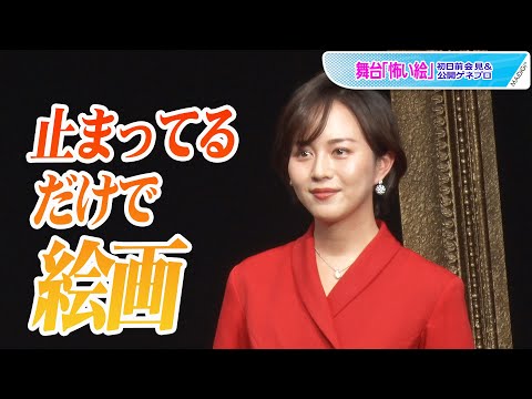 女優の比嘉愛未さんが3月3日、よみうり大手町ホール(東京都千代田区)で、舞台「怖い絵」の公開ゲネプロを行い、共演の尾上松也さん、劇団EXILEの佐藤寛太さんらと会見を行った。