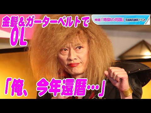 俳優の遠藤憲一さんが4月21日、東京都内で行われた映画「地獄の花園」(関和亮監督、5月21日公開)のイベントに登場。同作は全国のOLたちの戦いを描いており、遠藤さんは劇中で一部上場企業の総務部の“魔王OL”赤城涼子役で出演。イベントに、金髪のかつらにミニスカートとガーターベルト、ハイヒールという役衣装で登場した遠藤さんは、OL役のオファーの感想を聞かれると「俺、今年還暦なんですね……」とぽつり。続けて「60歳のイメージがこういう感じじゃなかったので……想像通りいかないもんだな、と感じました」と苦笑いを浮かべていた。