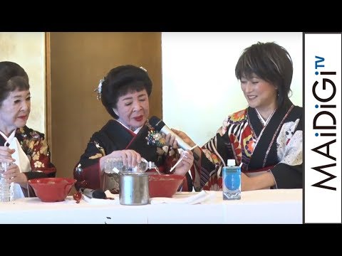 お笑いタレントの友近さん扮(ふん)する自称大物演歌歌手、水谷千重子さんが8月23日、東京都内で行われた明治座2019年2月公演「水谷千重子50周年記念公演」の製作発表会見に登場した。