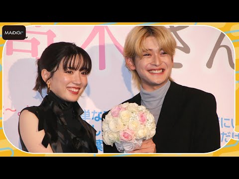 俳優の永野芽郁さんが6月19日、東京都内で行われた主演映画「からかい上手の高木さん」(今泉力哉監督)の大ヒット御礼舞台あいさつに、共演の高橋文哉さんと登場。舞台あいさつ終盤では、本作が初共演となる高橋さんが永野さんへ感謝の思いを明かして花束を贈る場面があり、永野さんは「うれしいです」と笑顔を見せた。