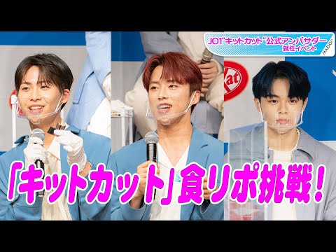 11人組グローバルボーイズグループ「JO1(ジェイオーワン)」が5月12日、オンラインで行われた、チョコレート菓子「キットカット」(ネスレ)公式アンバサダー就任イベントに出席。公式アンバサダーに就任して“初公務”となったこの日のイベントでは、定番と期間限定のキットカットが用意され、常温と凍らせた製品を食べ比べる食リポに挑戦した。
