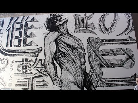 マンガ「進撃の巨人」をテーマにした「進撃の巨人展」が上野の森美術館(東京都台東区)で11月28日から開催。この日の内覧会では、目玉の「リアルスケール超大型巨人」や諫山さんの生原画を展示。ヘッドマウントディスプレーを使用した3D映像による360°体感シアターなどがお披露目された。また、館内には、原作にまだ登場していない新キャラクターが描かれた生原稿も展示されている。