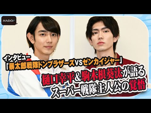 新旧スーパー戦隊が競演する「VSシリーズ」の新作「暴太郎戦隊ドンブラザーズVSゼンカイジャー」が期間限定で上映中だ。「暴太郎戦隊ドンブラザーズ」(2022~23年)でドンモモタロウ/桃井タロウ役を演じた樋口幸平さん、「機界戦隊ゼンカイジャー」(2021~22年)でゼンカイザー/五色田介人役、「ドンブラザーズ」でゼンカイザーブラック/五色田介人役を演じた駒木根葵汰さんに、共演しての感想や作品の見どころ、主人公を演じた者同士が感じた難しさや醍醐味を聞いた。