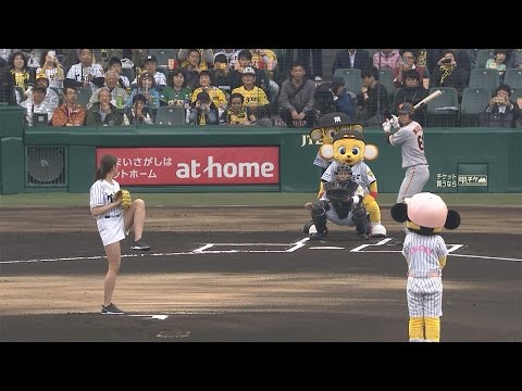 “神スイング”や“神ピッチング”で話題のタレントの稲村亜美さんが、阪神甲子園球場(兵庫県西宮市)で4月8日開催されたプロ野球・阪神対巨人戦で始球式を行い、自己最速タイの103キロのストライク投球を披露した。