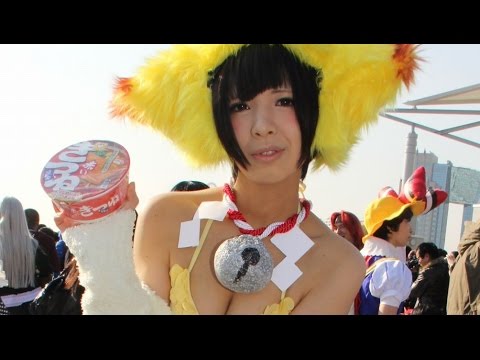 コミケは、1975年に始まったマンガや小説、ゲーム、音楽などの同人誌の即売会で、現在は夏と冬の年2回開催されている。コスプレは近年、“長もの”と呼ばれる小道具の使用を認めたり、撮影が可能なエリアを拡大するなどルールが変更された。2012年冬から撮影が可能になったエントランスは、東京ビッグサイトを背景に撮影できることもあり、多くのコスプレーヤーが集まっていた。コミケでコスプレをするには1日当たり800円の登録料が必要。