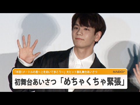 オムニバス映画「半径1メートルの君~上を向いて歩こう~」の大ヒット御礼舞台あいさつが3月15日、東京都内で行われ、ボーイズグループ「JO1」の豆原一成さんら出演者が登場した。
