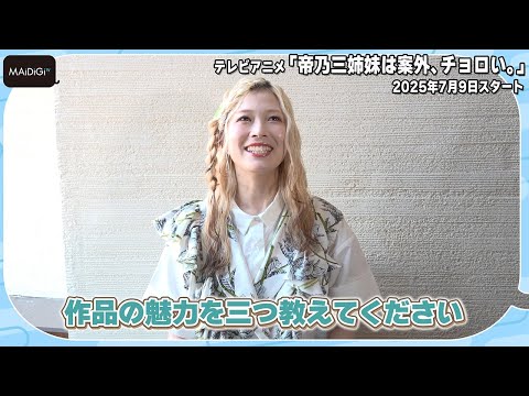 「週刊少年サンデー」(小学館)で連載中のひらかわあやさんの人気マンガが原作のテレビアニメ「帝乃三姉妹は案外、チョロい。」が、7月9日からTOKYO MXほかで順次放送される。芸、武、文それぞれの天才である帝乃三姉妹と、全てが平均以下の凡人・綾世優との同居生活を描いたホームラブコメディー。“文の天才”帝乃三和役の青山吉能さんに同作の魅力を聞いた。