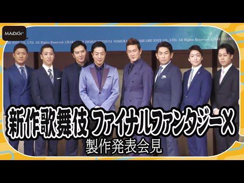 「ファイナルファンタジーX」は、架空の球技「ブリッツボール」の選手で異世界スピラに召喚された少年ティーダと、召喚士の少女ユウナが魔物「シン」を倒すため冒険の旅に出るというストーリー。菊之助さんがティーダ役、中村米吉さんがユウナ役、中村獅童さんがアーロン役、尾上松也さんがシーモア役、坂東彌十郎さんがジェクト役として出演する。会見には北瀬佳範プロデューサー、獅童さん、松也さん、坂東彦三郎さん、中村梅枝さん、米吉さん、中村橋之助さんも出席した。
