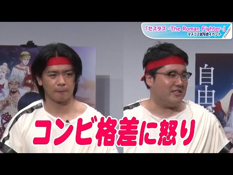 お笑いコンビ「マヂカルラブリー」の野田クリスタルさんと村上さんが4月7日、東京都内で行われたテレビアニメ「セスタス -The Roman Fighter-」試写会イベントに登場した。「セスタス -The Roman Fighter-」は14日から、フジテレビ「+Ultra」ほかで毎週水曜深夜0時55分から放送。