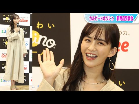 この日、北海道産の大豆と小豆を使ったスナックの試食をした優木さんは「お豆の柔らかさを表現してみました」とコーディネートについて語った。
