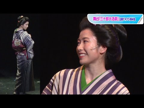 昨年、アイドルグループ「AKB48」を卒業した横山由依さんが4月1日、新国立劇場(東京都渋谷区)で行われた舞台「三十郎大活劇」の公開ゲネプロと取材会に、主演の劇団EXILE青柳翔さんらと出席。卒業後初の舞台出演となる横山さんは、ヒロインの芸者・おやつ役を演じた。