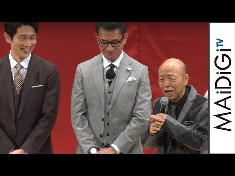 俳優の中井貴一さんと佐々木蔵之介さんがダブル主演する映画「嘘八百」(武正晴監督、2018年1月5日公開)の試写会舞台あいさつが12月17日、東京都内で行われ、中井さんや佐々木さん、友近さん、森川葵さん、前野朋哉さん、堀内敬子さん、坂田利夫さん、木下ほうかさん、塚地武雅さん、芦屋小雁さん、近藤正臣さんらが登場した。