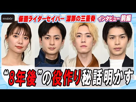 特撮ドラマ「仮面ライダーセイバー」のVシネクスト「仮面ライダーセイバー 深罪(シンザイ)の三重奏(トリオ)」(上堀内佳寿也監督)が、期間限定上映中だ。テレビシリーズの続編で、最終話から「8年後」が舞台となる今作は、「セイバー」初の単独劇場上映作でもある。神山飛羽真らが救った世界の“その後”がどうなっているのか。そんな待望の新作について、仮面ライダーセイバー/神山飛羽真役の内藤秀一郎さん、仮面ライダーブレイズ/新堂倫太郎役の山口貴也さん、仮面ライダーエスパーダ/富加宮賢人役の青木瞭さん、須藤芽依役の川津明日香さんの4人を直撃。8年後のキャラクターの心情や役作り、互いの印象の変化などを聞いた。