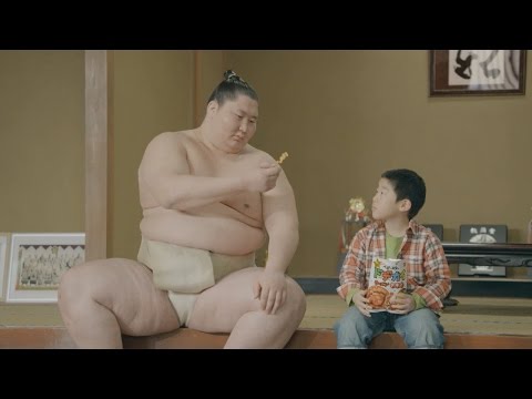 CMは、稽古(けいこ)を終えた逸ノ城関が「ドデカイラーメン」をおいしそうに食べる男の子とコミカルなやりとりを繰り広げる……という内容で、逸ノ城関が初々しい芝居を披露している。CMは「教える」編、「ような」編、「なれよ」編の3パターンが放送される。