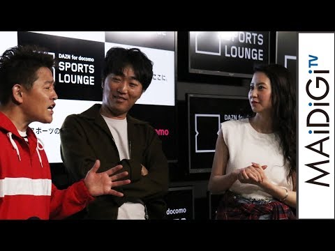 【動画】河北麻友子、スピワゴ井戸田の熱弁に「長い!」 「DAZN for docomo SPORTS LOUNGE」オープニングセレモニー 会見1