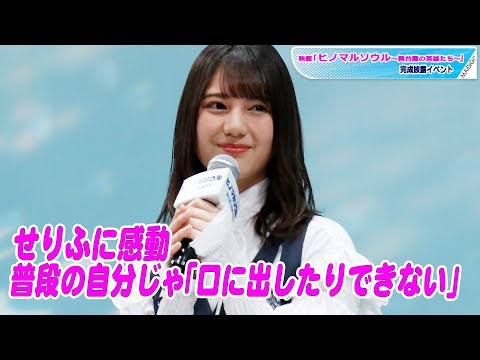 アイドルグループ「日向坂46」の小坂菜緒さんが4月5日、東京都内で行われた田中圭さんの主演映画「ヒノマルソウル~舞台裏の英雄たち~」(飯塚健監督、5月7日公開)の完成披露イベントに登場。撮影の思い出を聞かれ、自身が演じた女子高校生テストジャンパーの小林賀子の思い切ったせりふを振り返った。