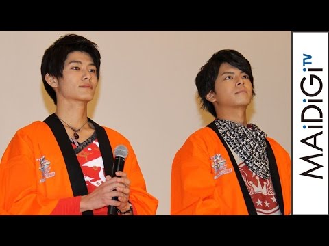 スーパー戦隊シリーズの最新作「劇場版 動物戦隊ジュウオウジャーVSニンニンジャー 未来からのメッセージ from スーパー戦隊」(竹本昇監督)の初日舞台あいさつが1月14日、東京都内で行われ、ジュウオウジャーのレッド、ジュウオウイーグル/風切大和役の中尾暢樹さんらキャストが法被姿で登場した。