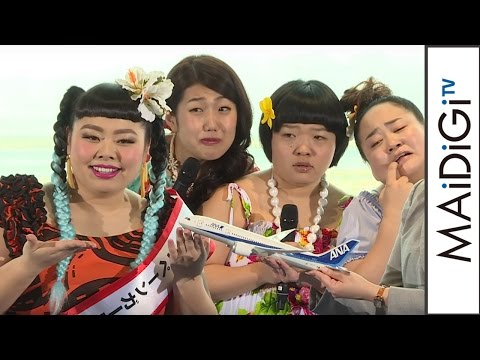 お笑いタレントの渡辺直美さんや横澤夏子さん、お笑いコンビ「おかずクラブ」のゆいPさんとオカリナさんが3月24日、羽田空港で行われた「ANA沖縄キャンペンガール」発表会見にカラフルなムームー姿で出席した。お笑いコンビ「NON STYLE(ノンスタイル)」の井上裕介さんと石田明さんもMCとして登場。