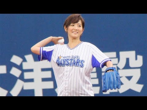 フリーアナウンサーの高島彩さんが8月22日、横浜スタジアム(横浜市中区)で行われたプロ野球・横浜DeNAベイスターズ対広島東洋カープ戦の始球式に登場。ベイスターズのユニホーム姿で登場した高島さんは一礼後にセットポジションから投球し、ボールはワンバウンドしてキャッチャーのミットに収まった。