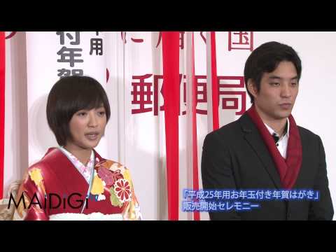 女優の夏菜さんが11月1日、京橋郵便局(東京都中央区)で、イメージキャラクターを務める「平成25年用お年玉付き年賀はがき」の販売開始セレモニーに晴れ着姿で登場。