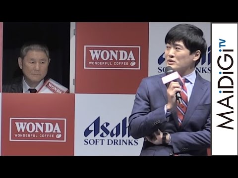 タレントのビートたけしさんが3月27日、東京都内で行われたアサヒ飲料の缶コーヒー「ワンダ」の新CM発表会に、お笑い芸人の劇団ひとりさん、お笑いコンビ「ハライチ」の澤部佑さんとともに登場した。