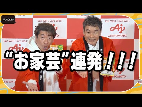 「ダチョウ倶楽部」の肥後克広さん、寺門ジモンさんが3月24日、東京都内で行われた「白米どうぞ」 累計食数100万食突破発表会に登場した。