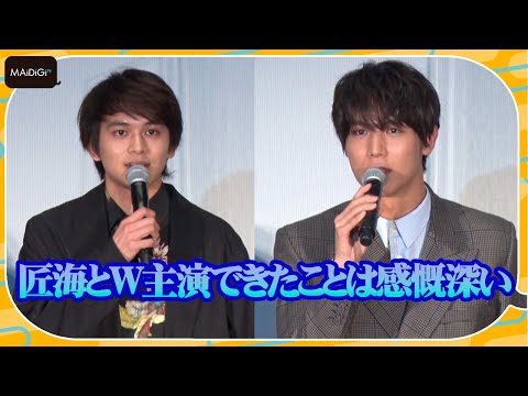 俳優の北村匠海さん、中川大志さんが1月19日、東京都内で行われたダブル主演映画「スクロール」完成披露舞台あいさつに登場した。