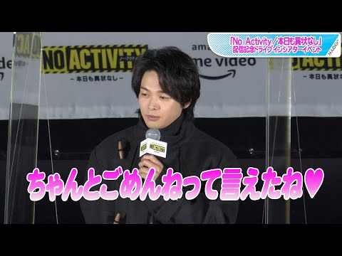 俳優の豊川悦司さんが12月17日、明治神宮外苑軟式球場(東京都新宿区)で、Amazon Prime Video(プライムビデオ)の配信ドラマ「No Activity/本日も異状なし」のドライブインシアターイベントに、共演の中村倫也さん、木村佳乃さん、岸谷五朗さん、お笑いコンビ「シソンヌ」のじろうさんらと登場した。