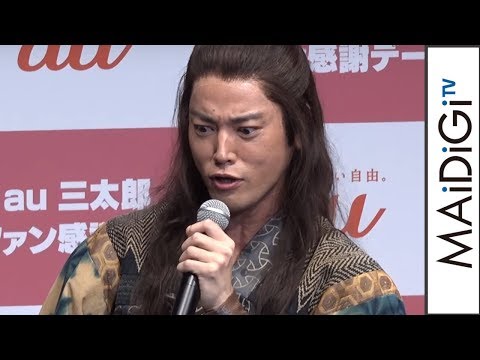 俳優の松田翔太さん、桐谷健太さん、濱田岳さんが3月6日、東京都内で開催された「au三太郎ファン感謝デー」に出席。3人は、三太郎CMシリーズの役衣装で登場しイベントを盛り上げた。