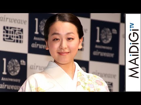 フィギュアスケートの元世界女王の浅田真央さんが6月19日、東京都内で行われた高反発マットレスパッド「エアウィーヴ」の発売10周年記念パーティーに、ブランドアンバサダーとして京友禅の一点ものという華やかな着物姿で出席し、大きな花束で10周年を祝福した。