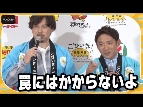 お笑いコンビ「アルコ&ピース」の平子祐希さんと酒井健太さんが3月4日、東京都内で行われた「三陸常磐食べようフェア」コラボ商品プレス向け発表会に俳優の松井愛莉さんやフリーアナウンサーの宇賀なつみさんとともに登場した。