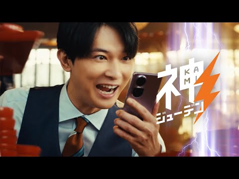 CMでは、吉沢さんと渡部さんが岩手名物のわんこそばに挑戦。2人が食事前に店員役の杉咲さんにスマホの充電を同時に頼んだところ、わんこそばを“亀”のようにゆっくり味わって食べる渡部さんの“亀ジューデン”スマホは充電が進まない一方、“神”のような速さでわんこそばを食べる吉沢さんの“神ジューデン”スマホはあっという間に100%充電が完了するというストーリー。